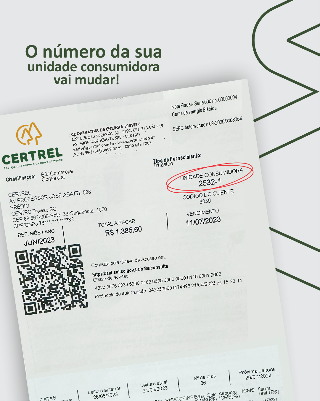 Atenção, associado! O número da sua Unidade Consumidora (UC) vai mudar.